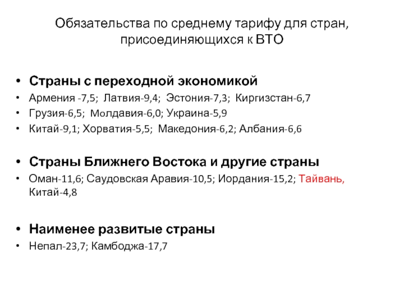 Обязательства по среднему тарифу для стран, присоединяющихся к ВТО