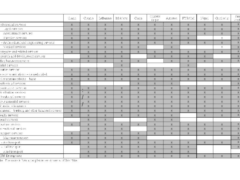 взяли на себя довольно большие и всеобъемлющие обязательства, в плане включенных секторов (подробнее: ВТО, 2005 г., таблица N 5).