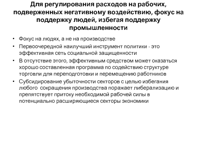 Для регулирования расходов на рабочих, подверженных негативному воздействию, фокус на поддержку