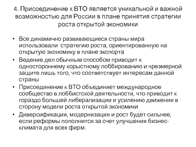 4. Присоединение к ВТО является уникальной и важной возможностью для России