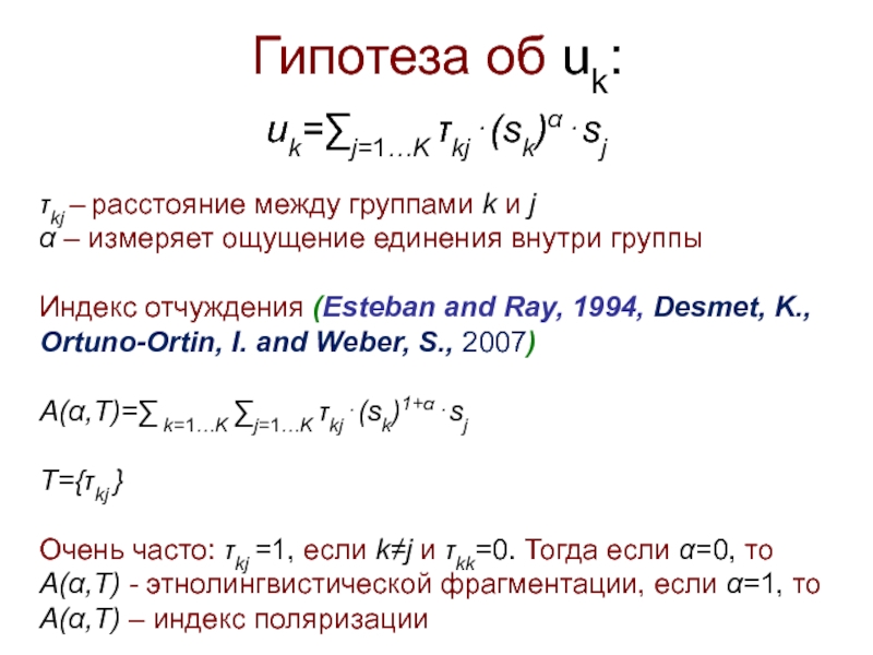2) Либо α=0: uk= (1-sk) – индекс этнолингвистической фрагментации