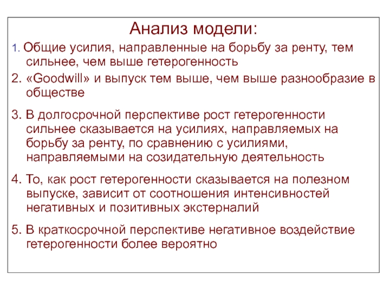 3. В долгосрочной перспективе рост гетерогенности сильнее сказывается на усилиях, направляемых на борьбу за ренту, по сравнению с усилиями, направляемыми на созидательную деятельность