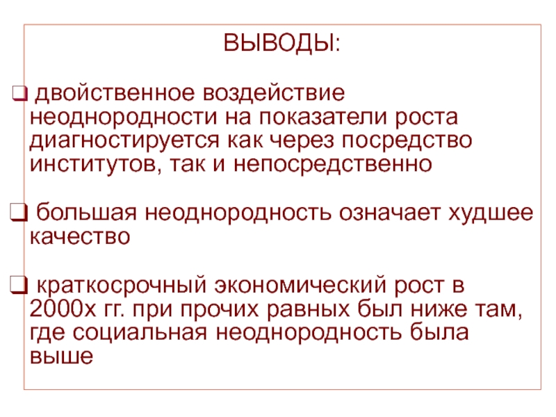 двойственное воздействие неоднородности на показатели роста диагностируется как через