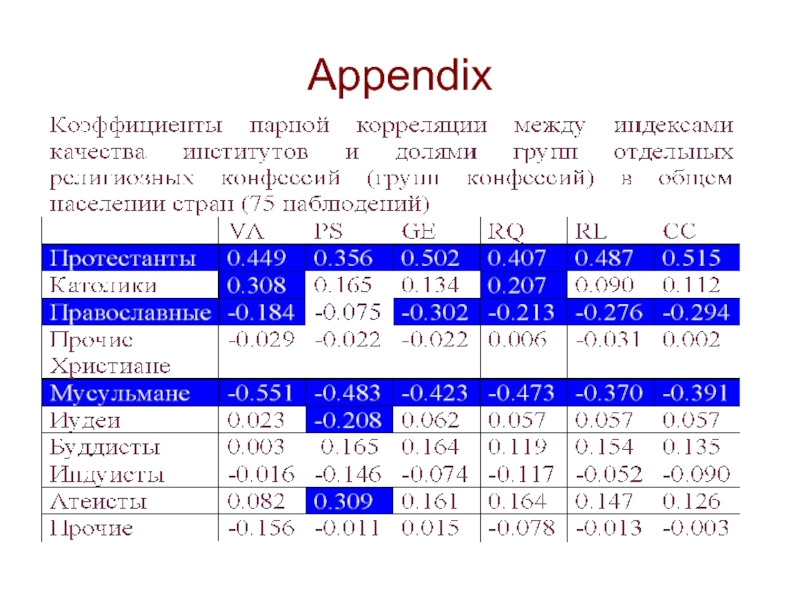 Слайд 21Эмпирический анализ: воздействие религиозной структуры общества на качество институтов