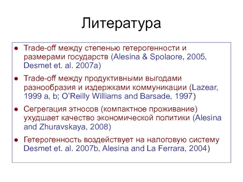Trade-off между степенью гетерогенности и размерами государств (Alesina & Spolaore, 2005,