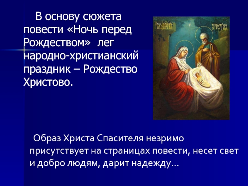 Образ Христа Спасителя незримо присутствует на страницах повести, несет свет и добро людям, дарит надежду…