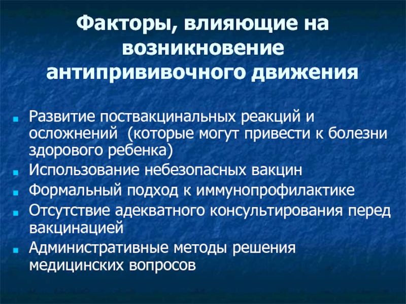 Слайд 5Факторы, влияющие на возникновение антипрививочного движения