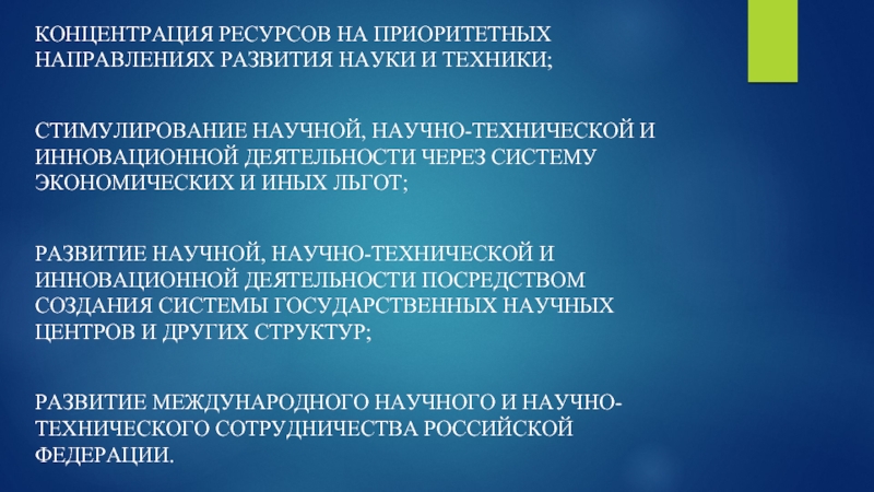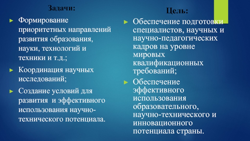 Обеспечение эффективного использования образовательного, научно-технического и инновационного потенциала страны.