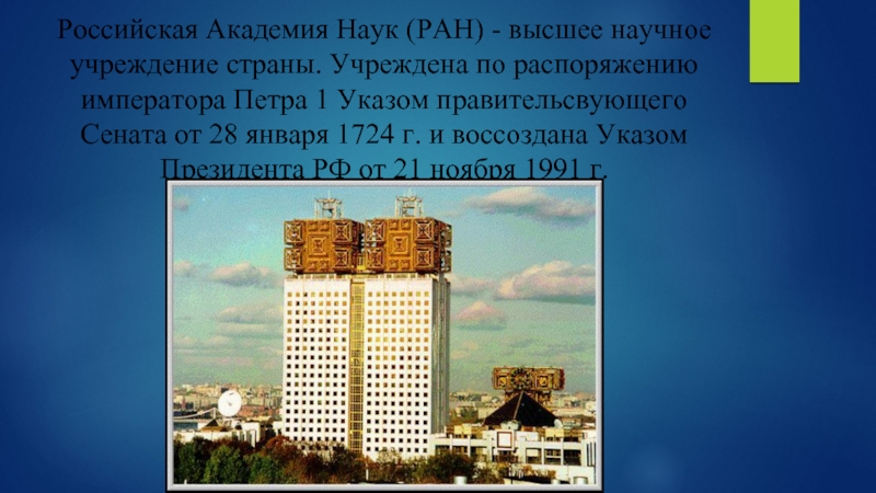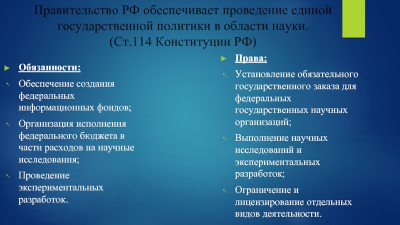 Правительство РФ обеспечивает проведение единой государственной политики в области науки.