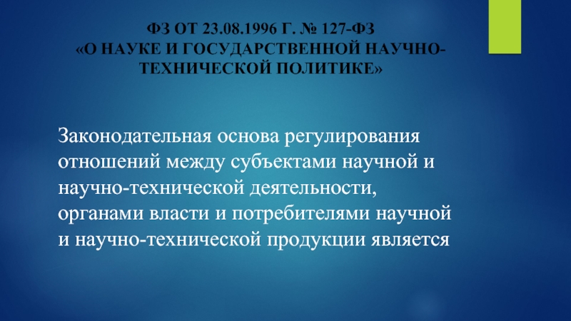«О НАУКЕ И ГОСУДАРСТВЕННОЙ НАУЧНО-ТЕХНИЧЕСКОЙ ПОЛИТИКЕ»