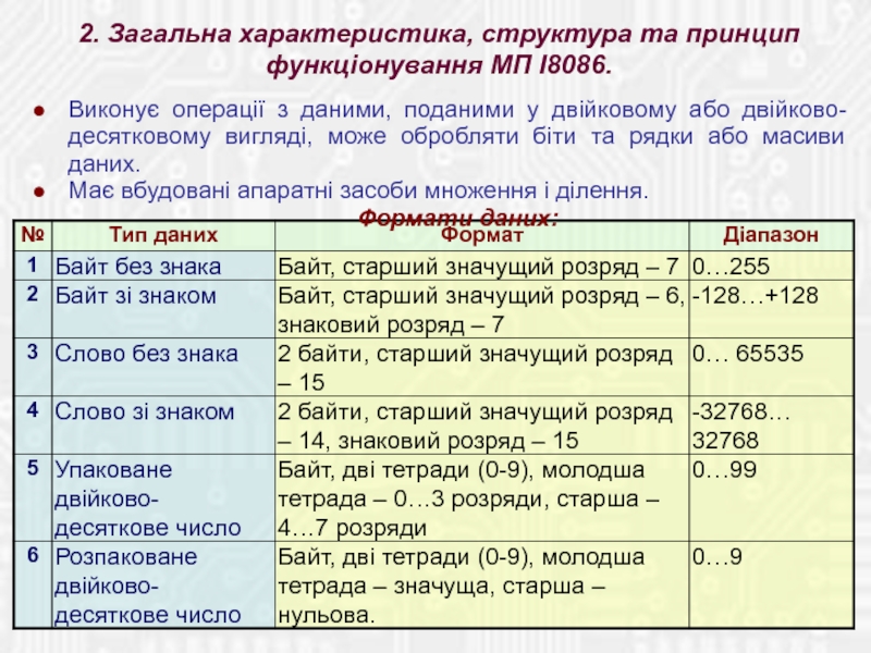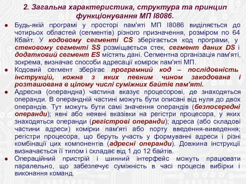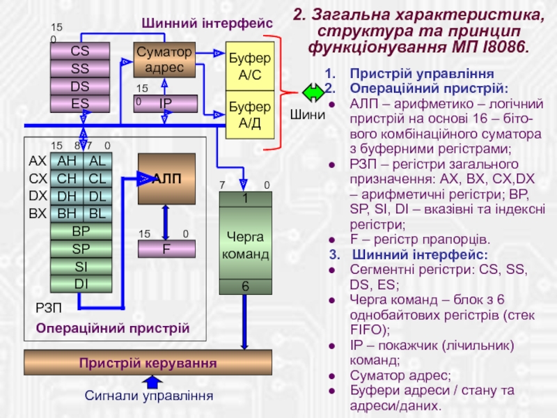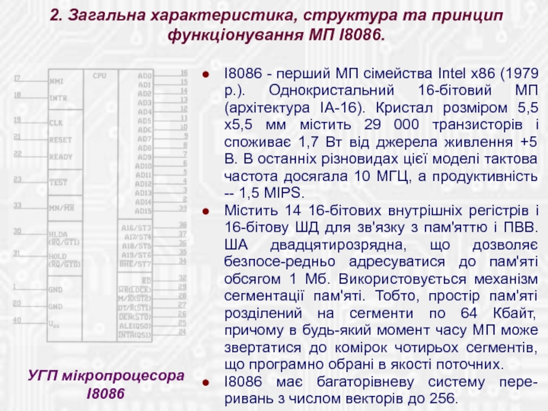 2. Загальна характеристика, структура та принцип функціонування МП І8086.