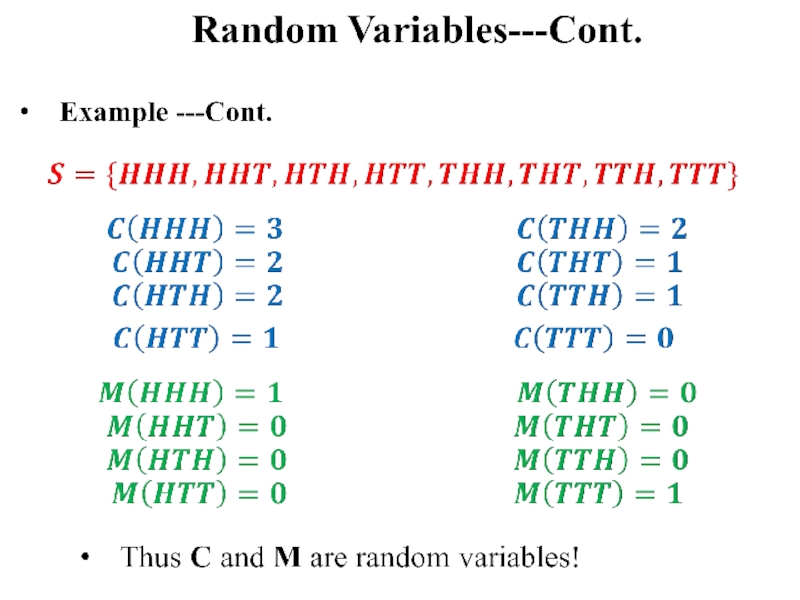 If we look closely, we will see that C and M are in fact functions that map every outcome of the experiment to a number.