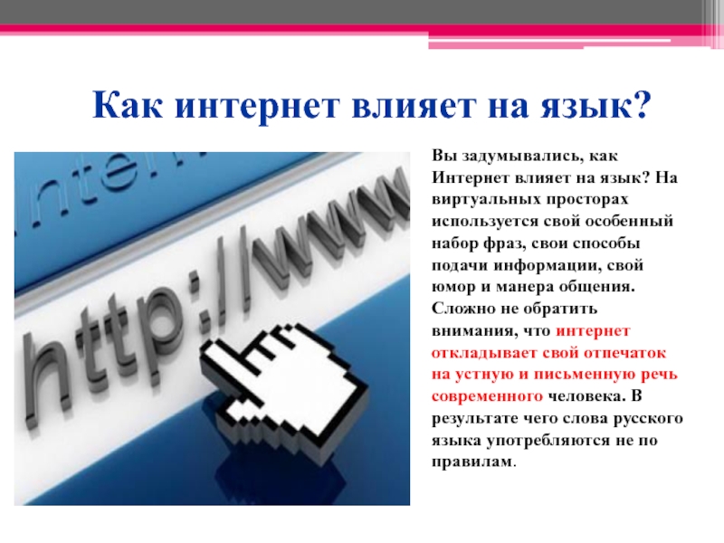 Слайд 4 Как интернет влияет на язык?