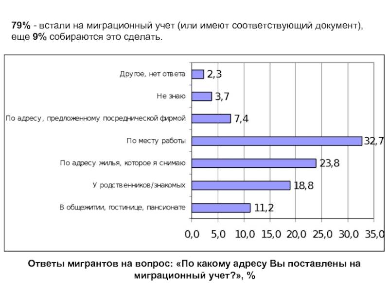 79% - встали на миграционный учет (или имеют соответствующий документ), еще 9% собираются это сделать.
