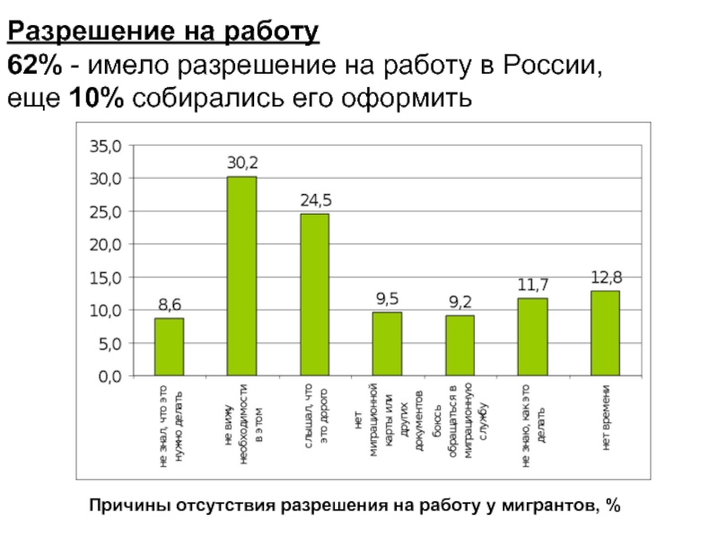Причины отсутствия разрешения на работу у мигрантов, %