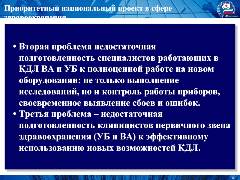 Слайд 13Приоритетный национальный проект в сфере здравоохранения