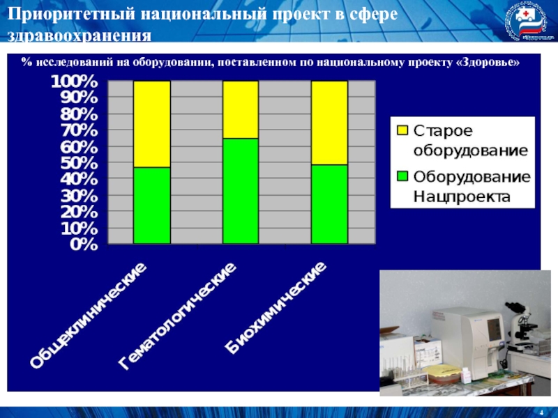 После поставок лабораторного оборудования по приоритетному национальному проекту «Здоровье» значительно изменилась ситуация во многих клинико-диагностических лабораториях (КДЛ) центральных районных больниц (ЦРБ), а также участковых больниц (УБ) и врачебных амбулаторий (ВА).
