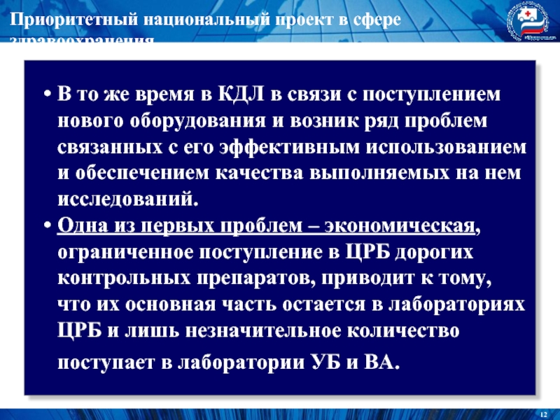 Слайд 12Приоритетный национальный проект в сфере здравоохранения