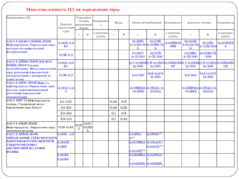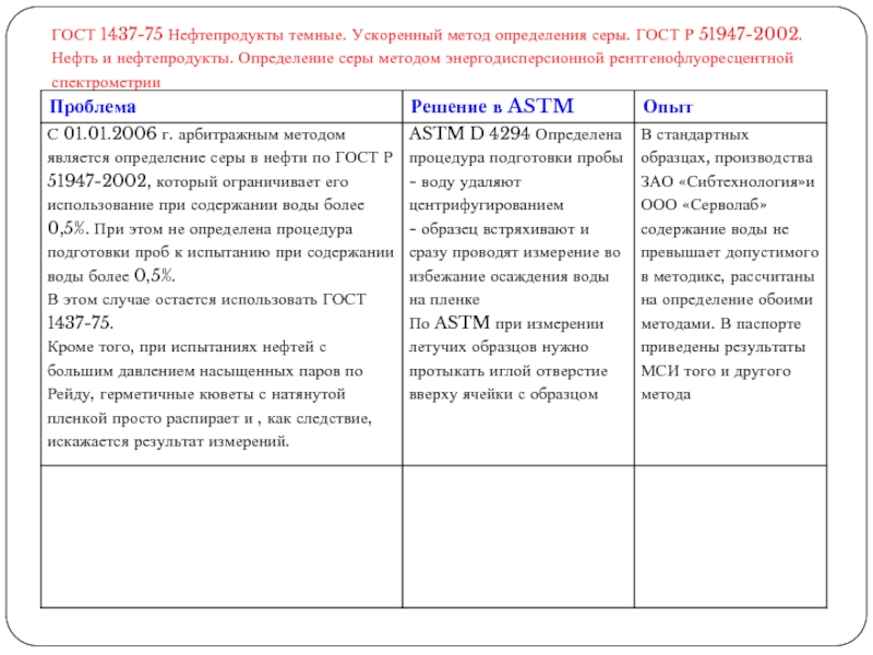 Слайд 43ГОСТ 1437-75 Нефтепродукты темные. Ускоренный метод определения серы. ГОСТ Р 51947-2002.