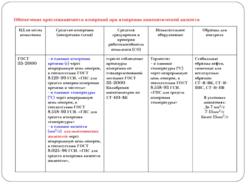 Слайд 33Обеспечение прослеживаемости измерений при измерении кинематической вязкости