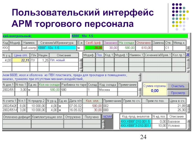 Слайд 24Пользовательский интерфейс АРМ торгового персонала