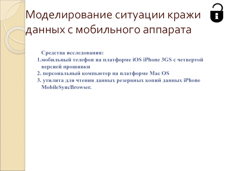 Разработать приложение для защиты базы данных контактов и сообщений на мобильных устройствах от фирмы Apple, которое будет служить дополнительной защитой клиентских БД
