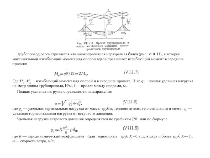 Трубопровод рассматривается как многопролетная неразрезная балка (рис. VIII.11), в которой максимальный