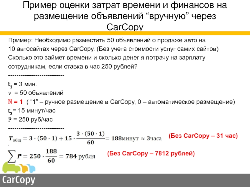 10 автосайтах через CarCopy. (Без учета стоимости услуг самих сайтов)