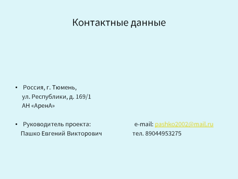 Руководитель проекта:                 e-mail: pashko2002@mail.ru