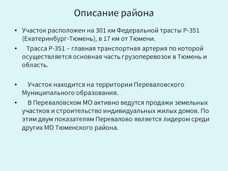 Участок расположен на 301 км Федеральной трасты Р-351 (Екатеринбург-Тюмень), в