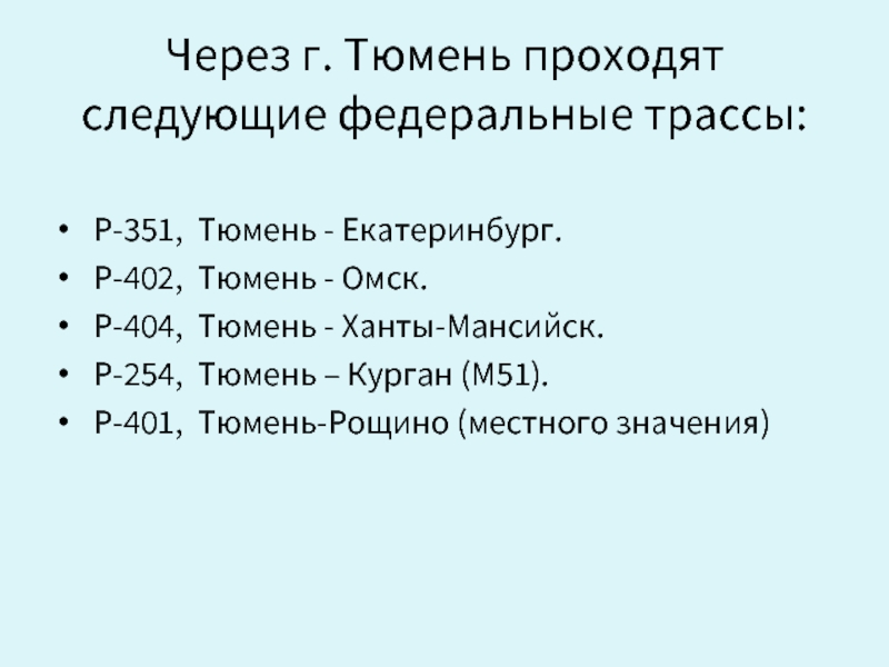 Слайд 4Через г. Тюмень проходят следующие федеральные трассы: