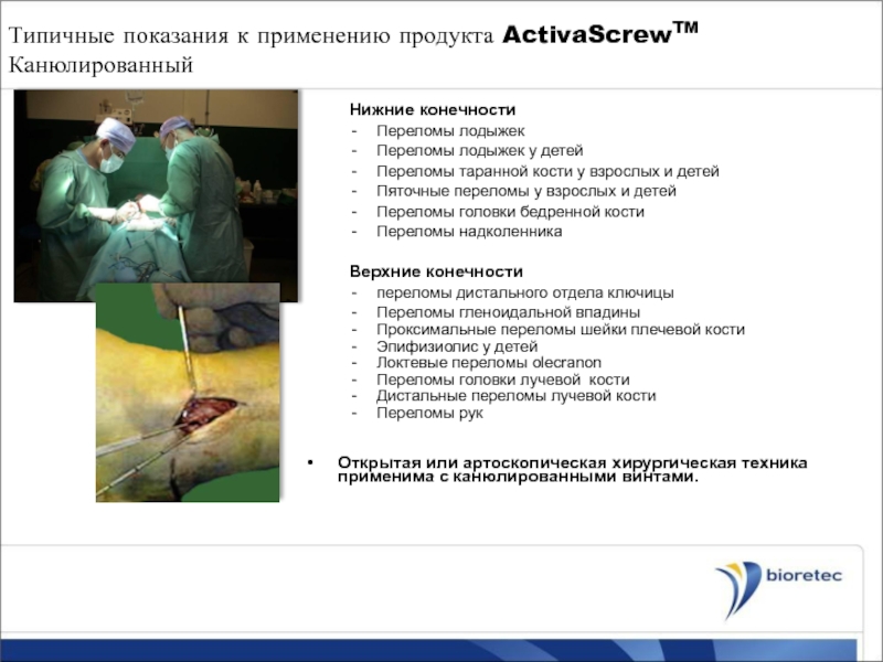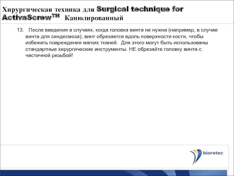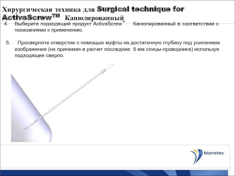 Хирургическая техника для Surgical technique for ActivaScrewTM Канюлированный