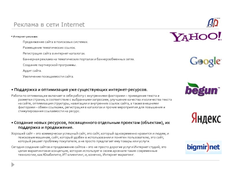 • Поддержка и оптимизация уже существующих интернет-ресурсов.