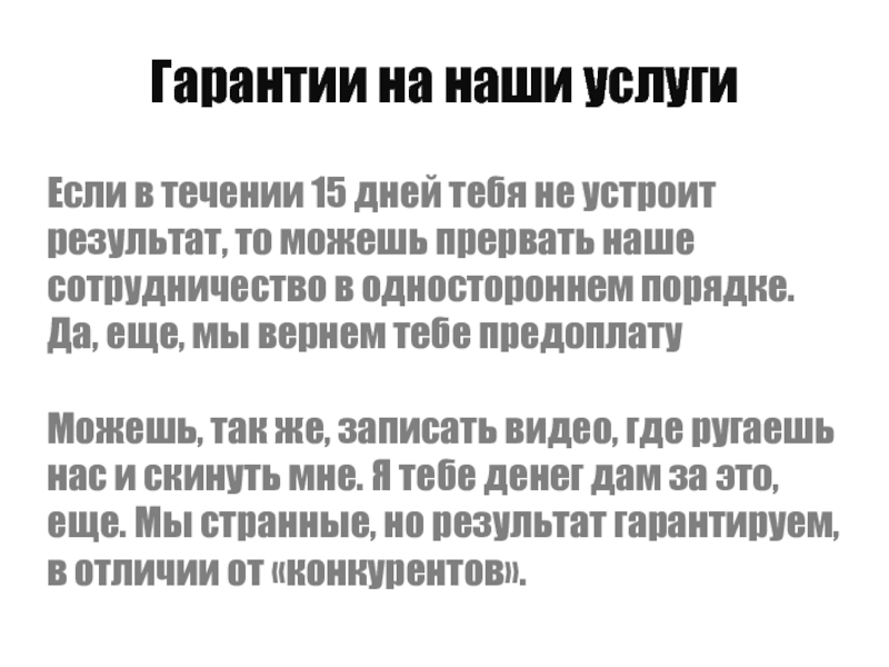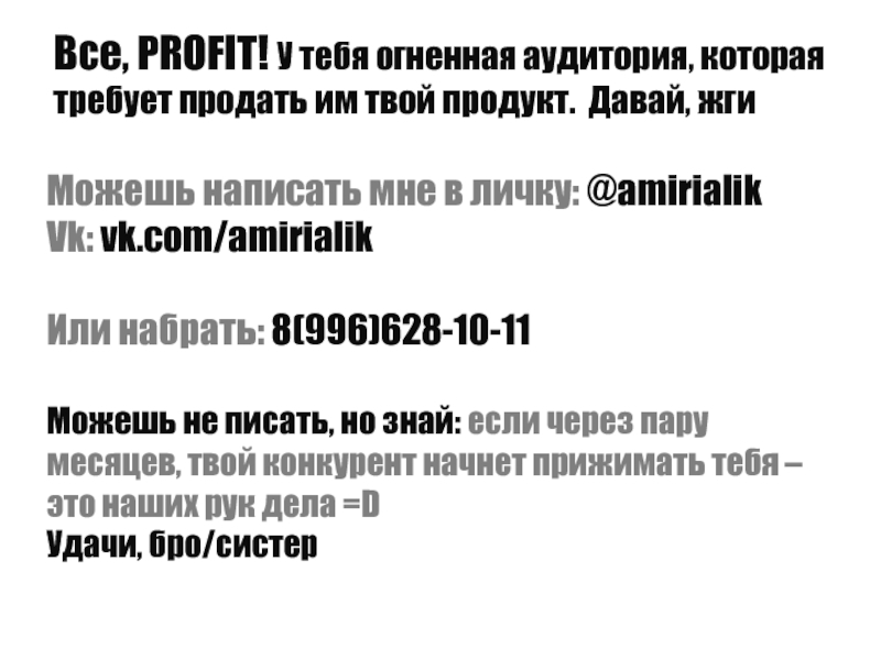 Можешь не писать, но знай: если через пару месяцев, твой конкурент начнет прижимать тебя – это наших рук дела =D