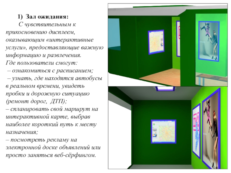 Внедрения новых hi-tech технологий (чувствительные к прикосновениям дисплеи, оказывающие "интерактивные услуги", предоставляющие важную информацию и развлечения).