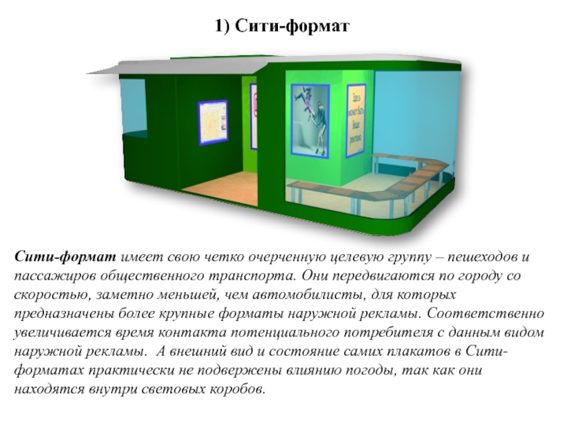В соответствии с результатами исследования Сити-формат оказался примерно в 3 раза эффективнее других видов наружной рекламы. Согласно данным, полученным в процессе данного социологического исследования, было выявлено, что наиболее эффективное место размещения Сити-формата являются остановки общественного транспорта, так как большая часть респондентов именно там чаще всего встречалась с данным видом наружной рекламы.