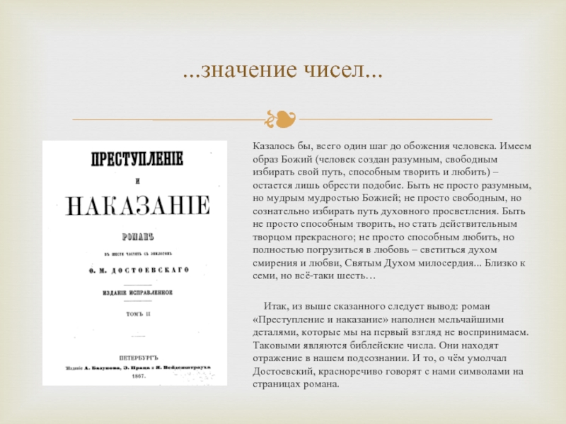 Цель нашего проекта – попытка анализировать его творчество, а именно роман «Преступление и наказание», через призму Священного писания.