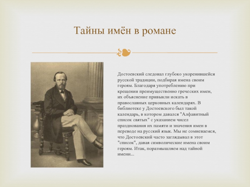 замечательного русского писателя Фёдора Михайловича Достоевского.
