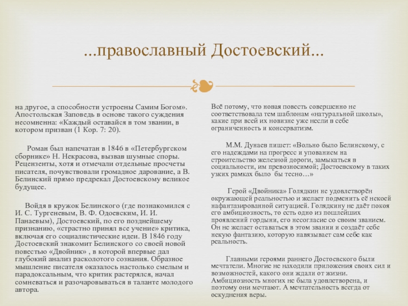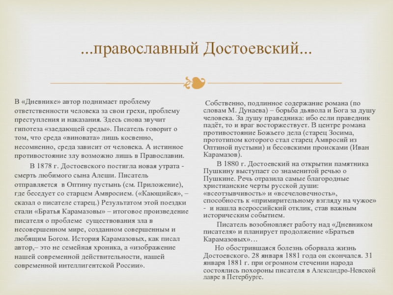 Слайд 3 «Читать Достоевского — это хотя сладостная, но утомительная, тяжёлая работа;