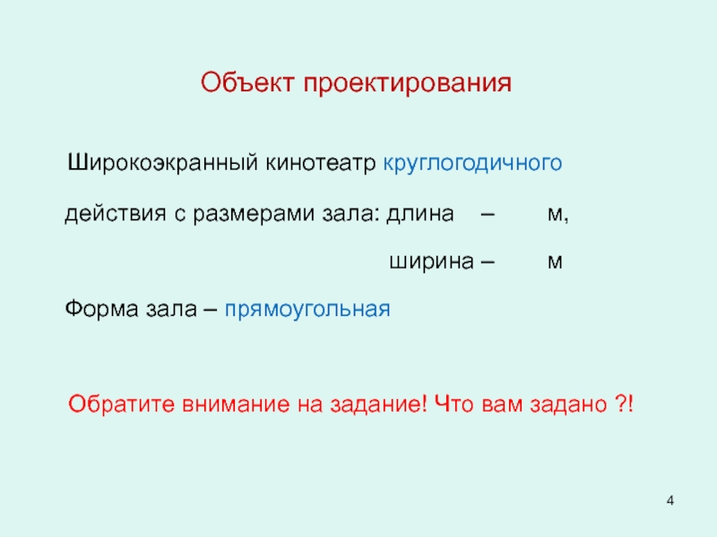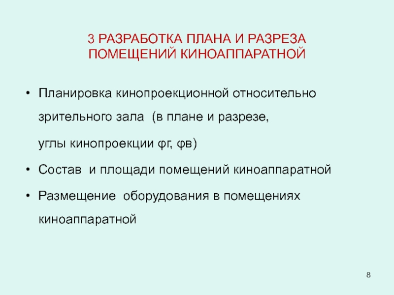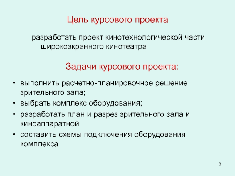 разработать проект кинотехнологической части широкоэкранного кинотеатра