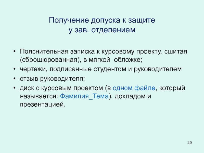 диск с курсовым проектом (в одном файле, который называется: Фамилия_Тема), докладом и презентацией.