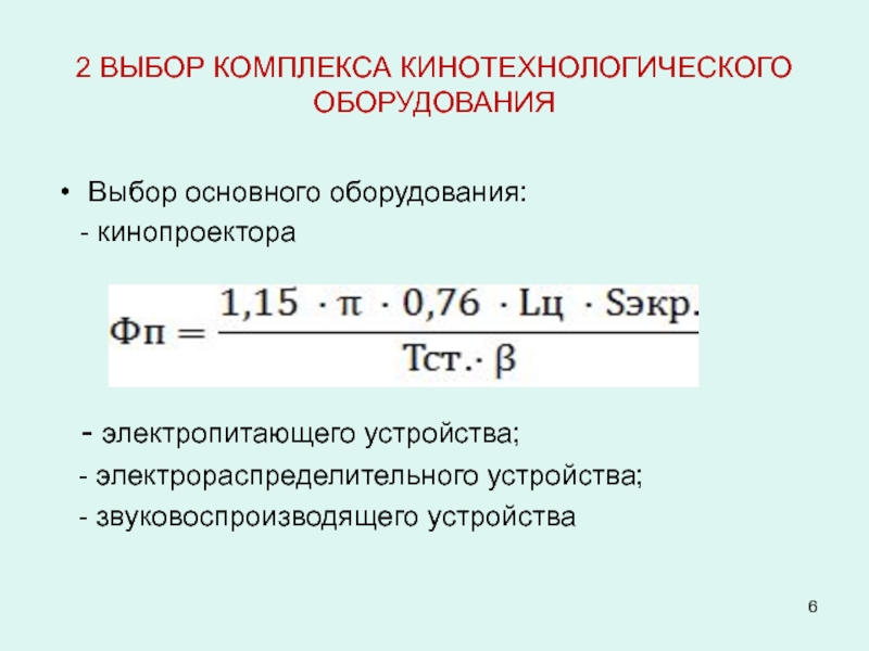 2 ВЫБОР КОМПЛЕКСА КИНОТЕХНОЛОГИЧЕСКОГО ОБОРУДОВАНИ