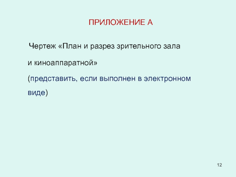 ПРИЛОЖЕНИЕ А. Чертеж «План и разрез зрительного зала и     киноаппаратной»
