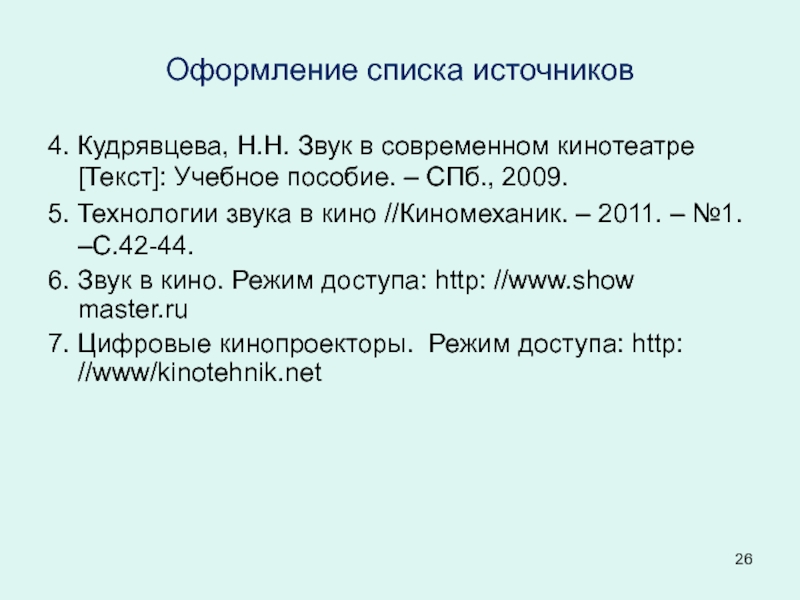 4. Кудрявцева, Н.Н. Звук в современном кинотеатре [Текст]: Учебное