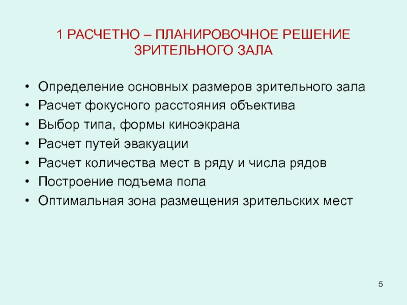 1 РАСЧЕТНО-ПЛАНИРОВОЧНОЕ РЕШЕНИЕ ЗРИТЕЛЬНОГО ЗАЛА	 ……5