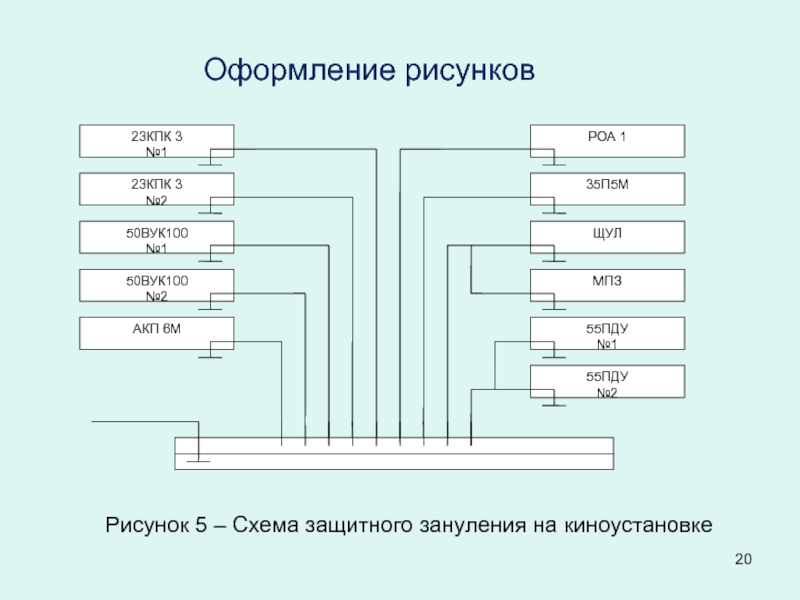 Слайд 20Рисунок 5 – Схема защитного зануления на киноустановке
