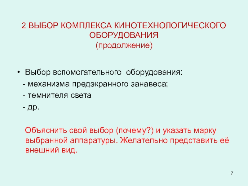 Слайд 72 ВЫБОР КОМПЛЕКСА КИНОТЕХНОЛОГИЧЕСКОГО ОБОРУДОВАНИЯ