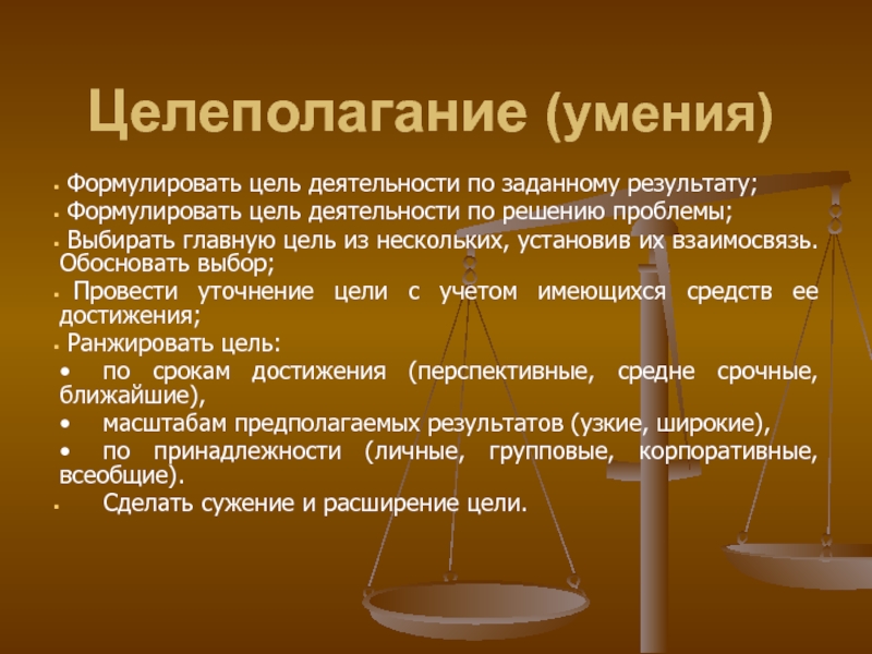 Слайд 31Целеполагание (умения)