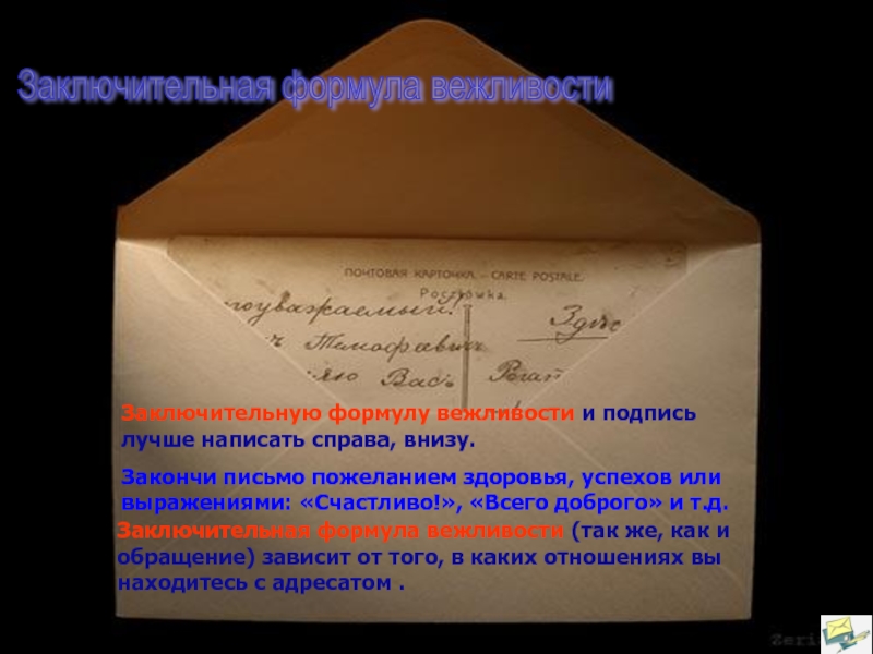 Слайд 26В том случае, когда письмо написано не с особой целью и