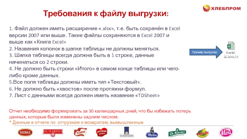 7. Лист с данными всегда должен иметь название «TDSheet»